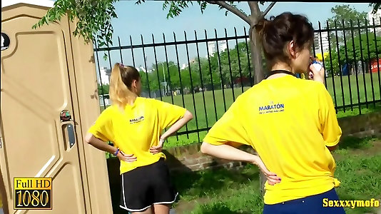ninfas de deportes súper calientes en una calle video candid
