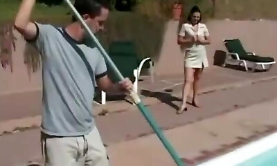 Cougar gets sex by the swimming pool