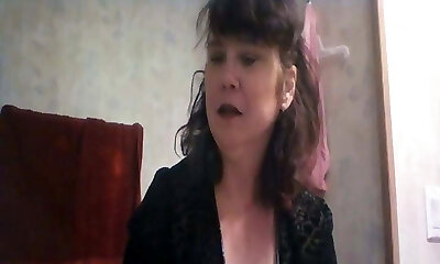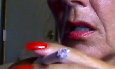 Kinky mature tart smokes a cigarette and fingers her coochie