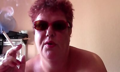 Wonderful old spunker has a smoke & plays with her succulent pussy