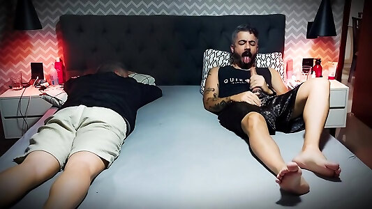 ich wichse meinen dicken schwanz neben meinem stiefbruder, während er nichts sieht - während unsere stiefmutter weg ist