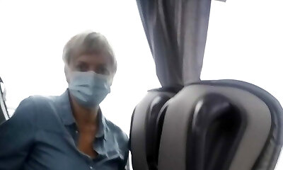 Exhibitionist seduces Cougar to Suck & Fap his Dick in Bus until He Cums
