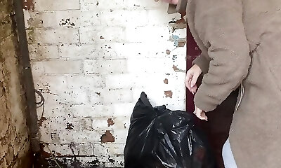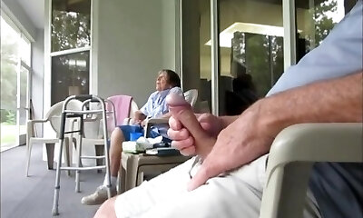 This exhibitionistic granny knows the best way to remove leaves in her yard