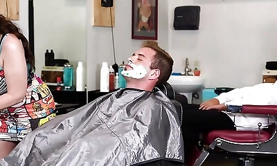 Hottest Cougar Barber In Town Melody Mynx Gives Her Client A Boner And A Blowjob - MYLF